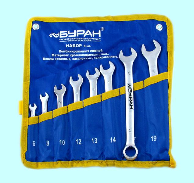 Набор ключей Комбинир. из 8-ми шт. (рожк. и накид.) 6-19мм DIN 3113 в сумке CrV "Буран"