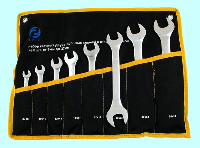 Набор ключей Рожковых из 8-ми шт. (8х10 - 24х27) в сумке хром-ванадий (сатингфиниш) #865 "CNIC"