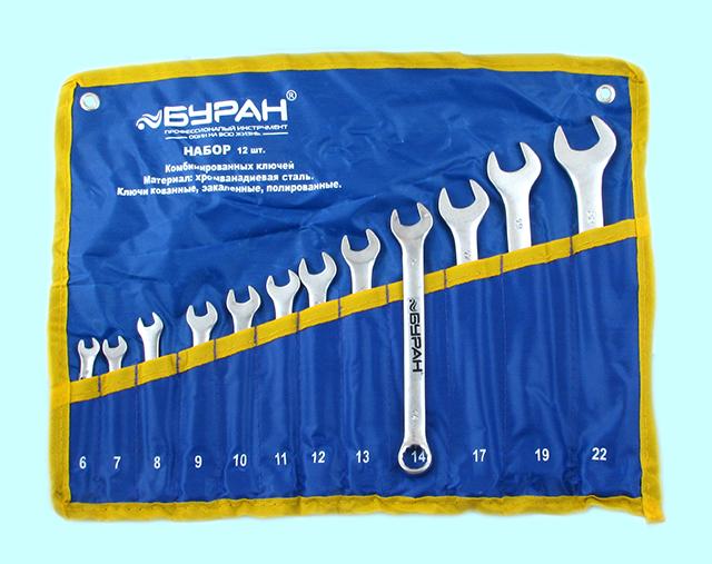 Набор ключей Комбинир. из 12-ти шт. (рожк. и накид.) 6-22мм DIN 3113 в сумке CrV "Буран"