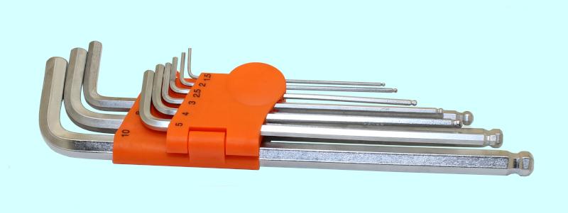 Набор ключей Шестигранных из 9шт (1,5;2;2,5;3;4;5;6;8;10мм) удлиненные на клипсе с шаром СrV "CNIC" (2145)