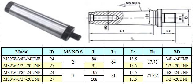 Оправка КМ2 / 3/8"-24UNF без лапки (М10х1.5), для резьбовых патронов "CNIC" (MS2W-3/8-24UNF)
