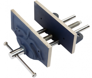 Традиционные столярные тиски, оборудованные быстроразъёмным механизмом. Простое нажатие защёлки приводит в действие механизм быстрого разжима, при этом передняя губка свободно перемещается, позволяя заменить рабочую заготовку на большую или меньшую. При высвобождении защёлки механизм возвращается в обычное положение и более точная подгонка осуществляется с помощью винта.