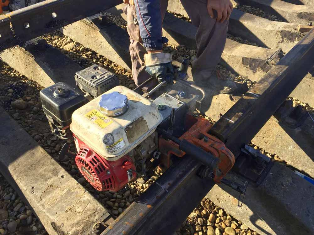 С незакаленной сталью обычно работают простым инструментом, который отличается скромными весогабаритными параметрами и несложной конструкций. Перед началом сверловки агрегат устанавливают на рельс и надежно фиксируют после выбора места для монтажа болта. Крепят станок непосредственно к подошве рельса.