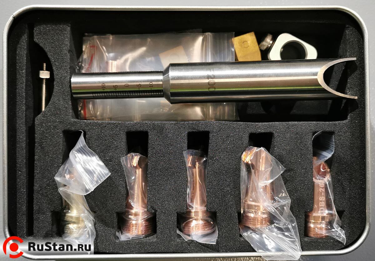 Аппарат комплектуется сменными насадками (соплами) на пистолет для сварки разных поверхностей.