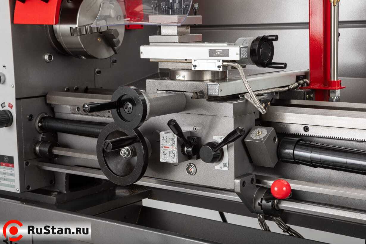 JET BD-13G имеет 15 типов продольных и поперечных подач в автоматическом режиме, а также позволяет нарезать 18-ть видов метрических и 13-ть видов дюймовых резьб. Для удобства нарезания длинных резьб, станок укомплектован резьбоуказателем. На станке предусмотрена возможность нарезания правой и левой резьбы