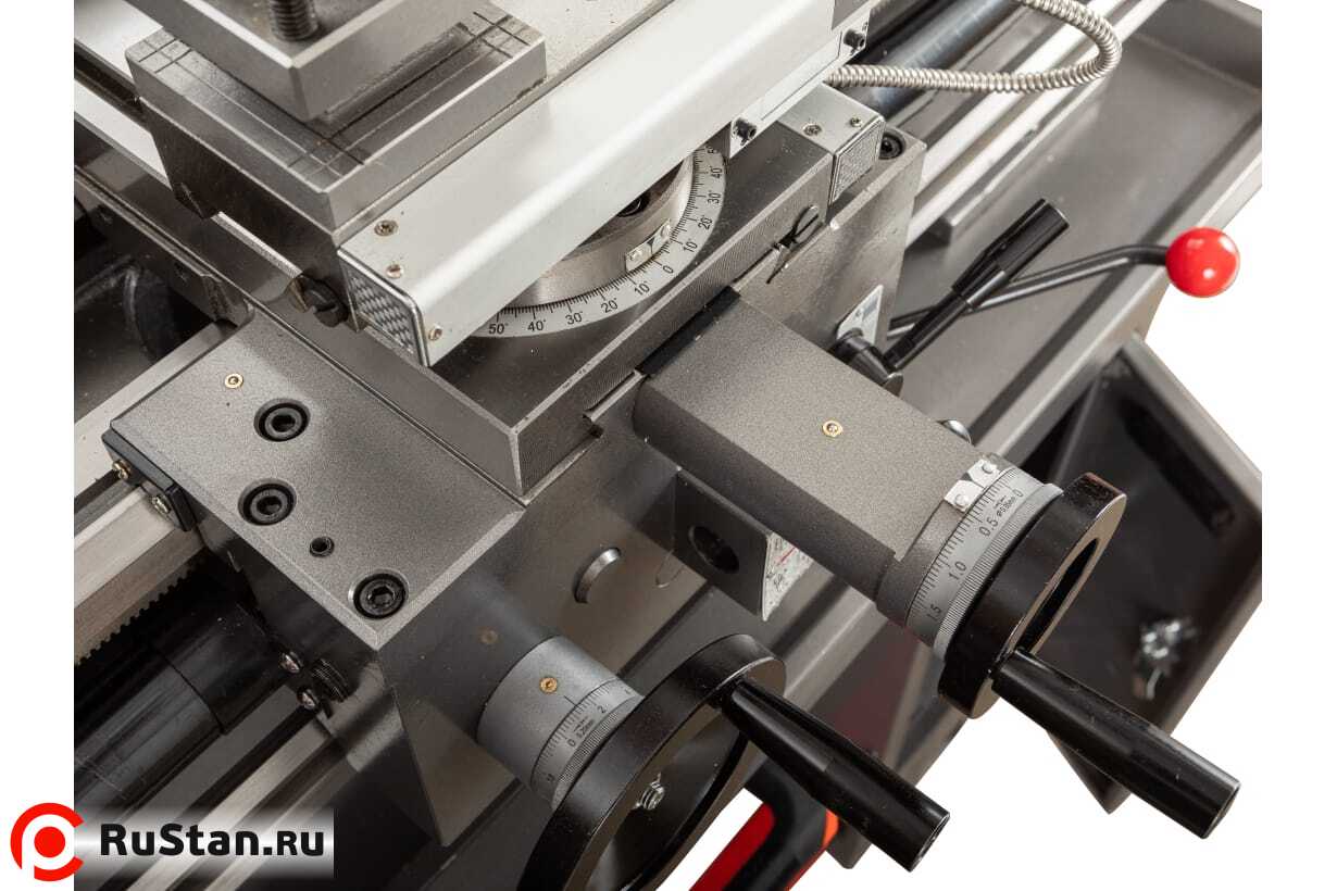 Возможность поворота суппорта малой продольной подачи, позволяет осуществлять проточку малых конусов, а юстировка задней бабки - для проточки длинных конусов.