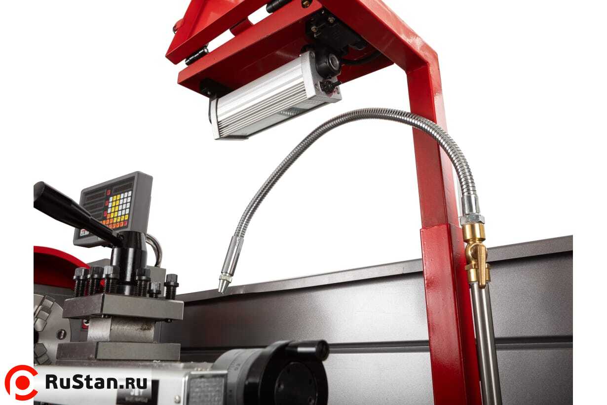 Станок поставляется в максимальной комплектации. В нее входят подвижный и неподвижный люнеты, устройство цифровой индикации (УЦИ) с цифровыми линейками по трем осям, ножной тормоз, регулируемы защитный экран суппорта, переходная втулка, набор инструмента и лампа освещения рабочей зоны. Станок BD-13G уже укомплектован системой подачи СОЖ.
