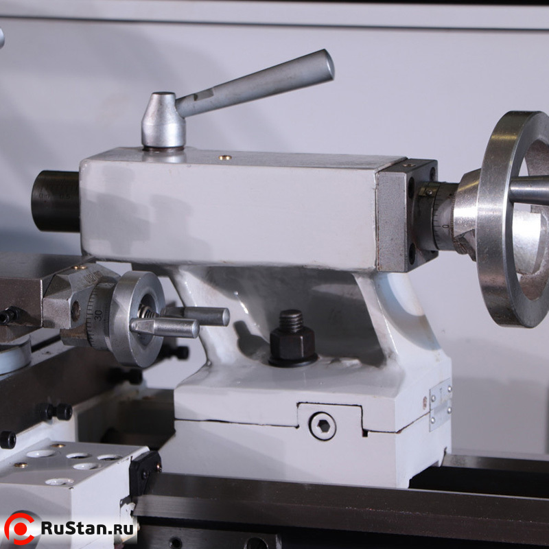 4. Рукоятка ручного перемещения верхних салазок суппорта - вращение по часовой стрелке – перемещение салазок влево. Вращение против часовой стрелки – перемещение салазок вправо.